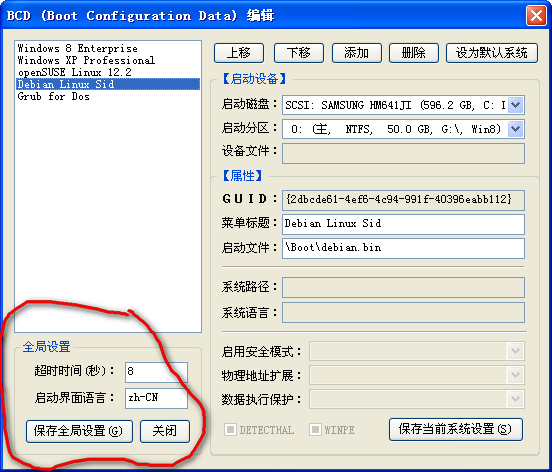 如果直接在Win7或者8下操作,直接点击系统BSD就可以了,如果是XP,但是系统以BSD引导启动,要选择其他位置的BSD(我的是在XP下改WIN8的引导),其他位置的BSD需要取消隐藏系统文件才能看见