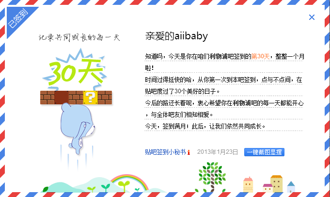 在本吧已累计签到30天了,截图留念一下下