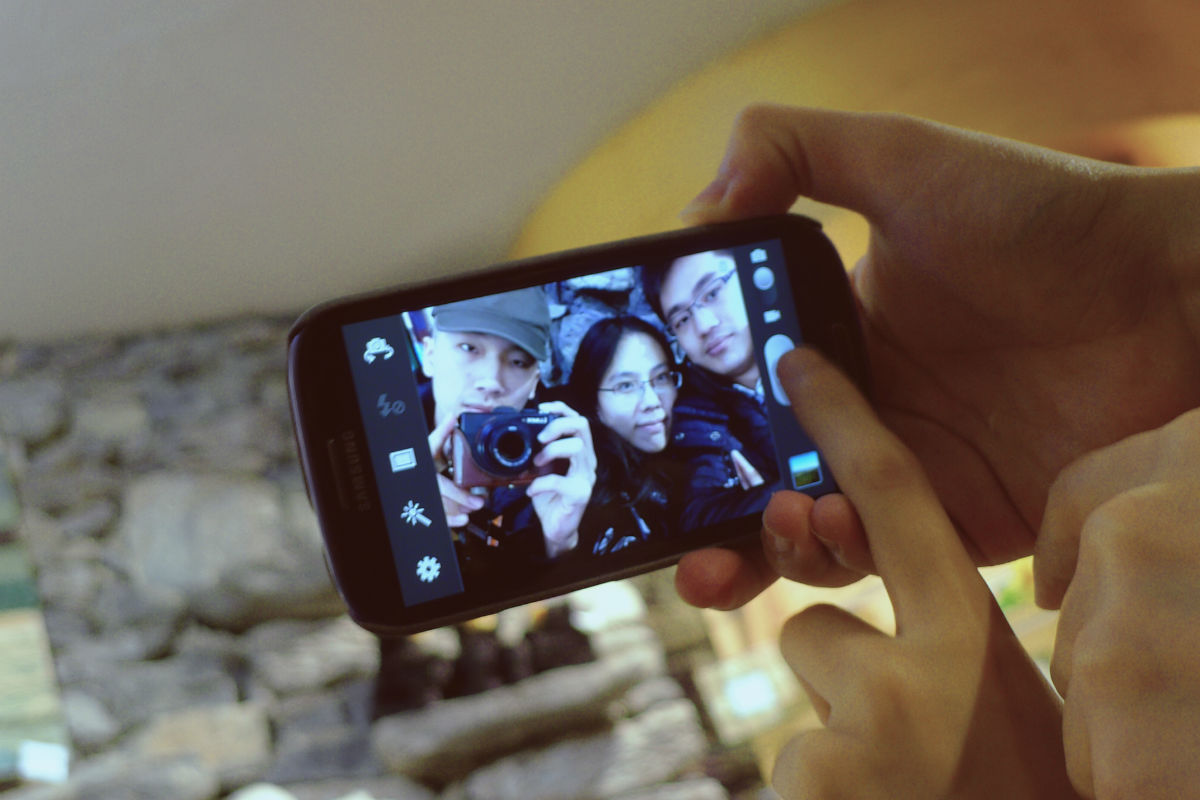 通行一妹纸用三星手机拍的,型号不太清楚。。。我感觉我卡片鸡被她手机给爆了,至少在拍人方面。。