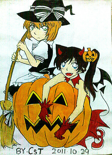 还有以前万圣节画来在校门口展出的。就是太大张了有些崩……