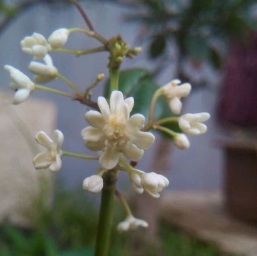 四季桂株。“大叶佛顶珠”花乳白至纯白色,花序密集,顶生花序独特,花期自春到秋连续不断。它们观赏价值很高,既可盆栽入室,也可露地大片栽植。各地可以根据不同的需要,选择不同的种或品种进行繁殖。例如以采花为目的,宜选用花繁而密的丰产型,例如开花、落花整齐的“潢川金桂”、“金桂”、“籽银桂”,“大花丹桂”、“橙红丹桂”等;以观花闻香为目的,宜选用“大花丹桂”,“籽丹桂”,“朱砂丹桂”,“大花金桂”,“圆瓣金桂”等;用作灌木、盆栽、盆景宜选用“日香桂”、“大叶佛顶珠”、“月月桂”、“四季桂”、“九龙桂”、“柳叶桂”等;用作乔木或作庭园主景,则适宜选栽“大叶黄银桂”、“金桂”、“大叶丹桂”、“大丹金桂”、“橙红丹桂”等。 育苗技术