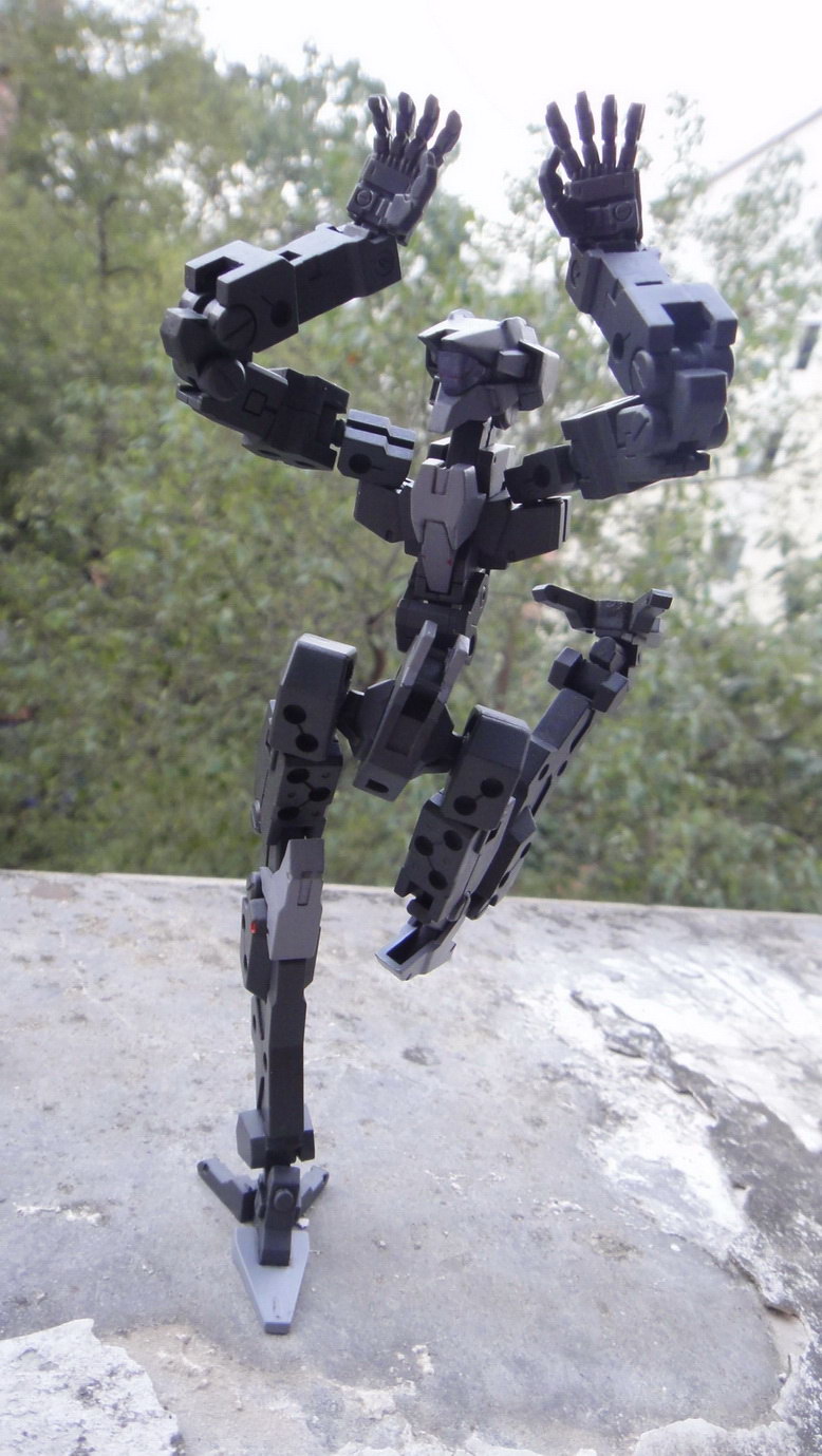 以前把玩用的素体君~无缝以后杂牌消光黑罐子直喷打底,然后一层大比例稀释的机械灰,最后手涂水性浅灰