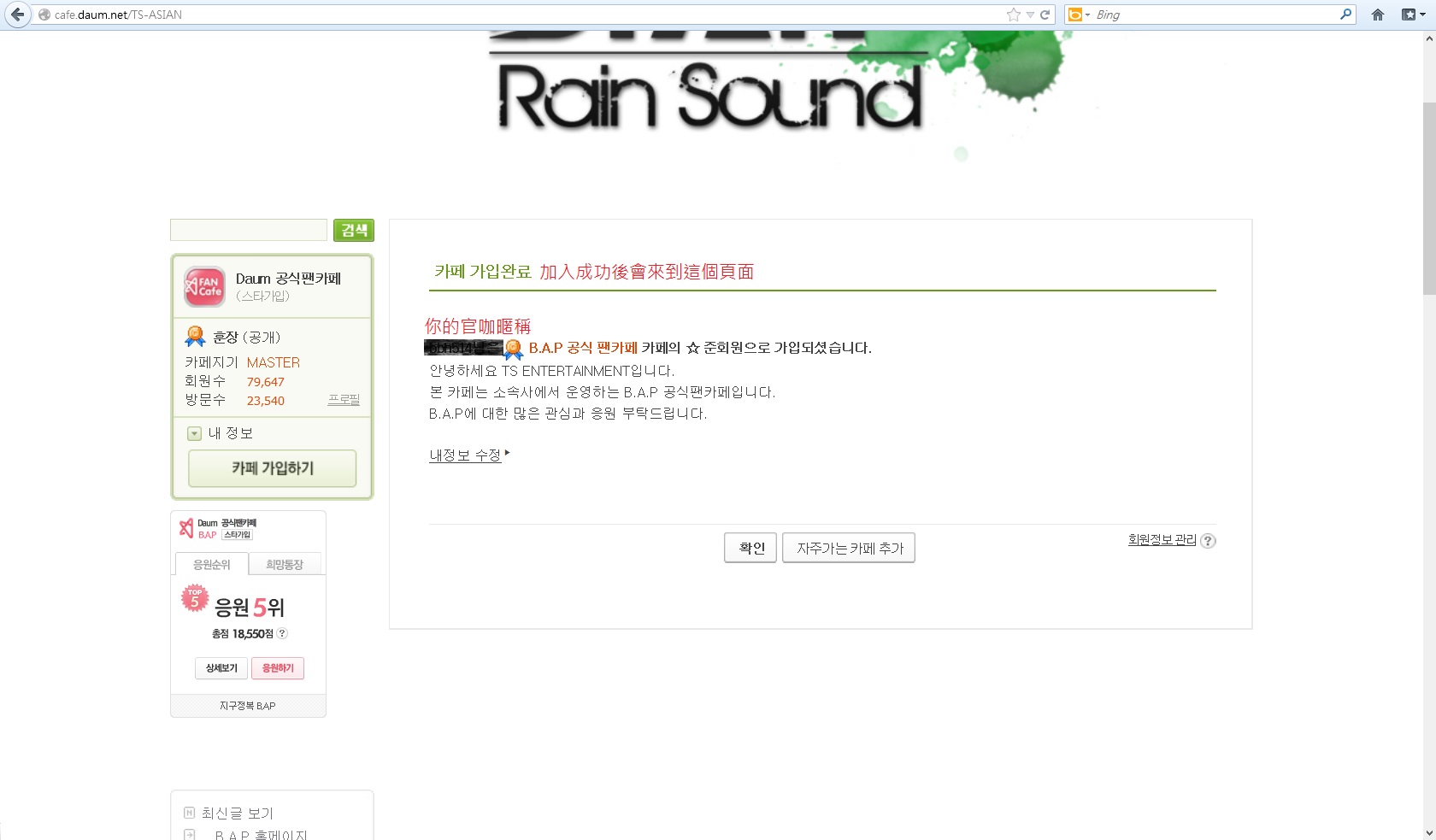 例:) 등업영재러브(x)