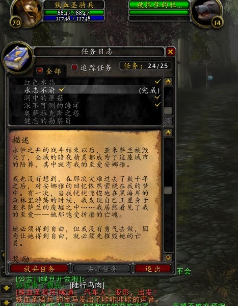 帮助朋友做骑士战马任务,想到60级的时候自己掏了1000金币,从厄运跑到斯坦索姆,最后还要去通灵学院做“审判与救赎”任务,话说当时最后一步卡了差点让我心碎,现在取消这个任务,真的有点不应该,让更多的人失去了体验这个游戏剧情的机会。