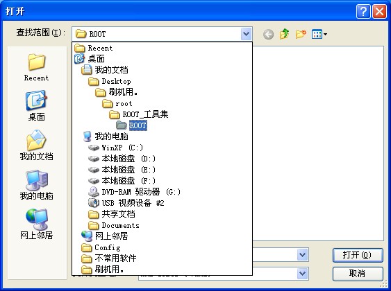 回复 15007537205 :看教程打开ROOT文件夹。 选择文件类型啊。。。