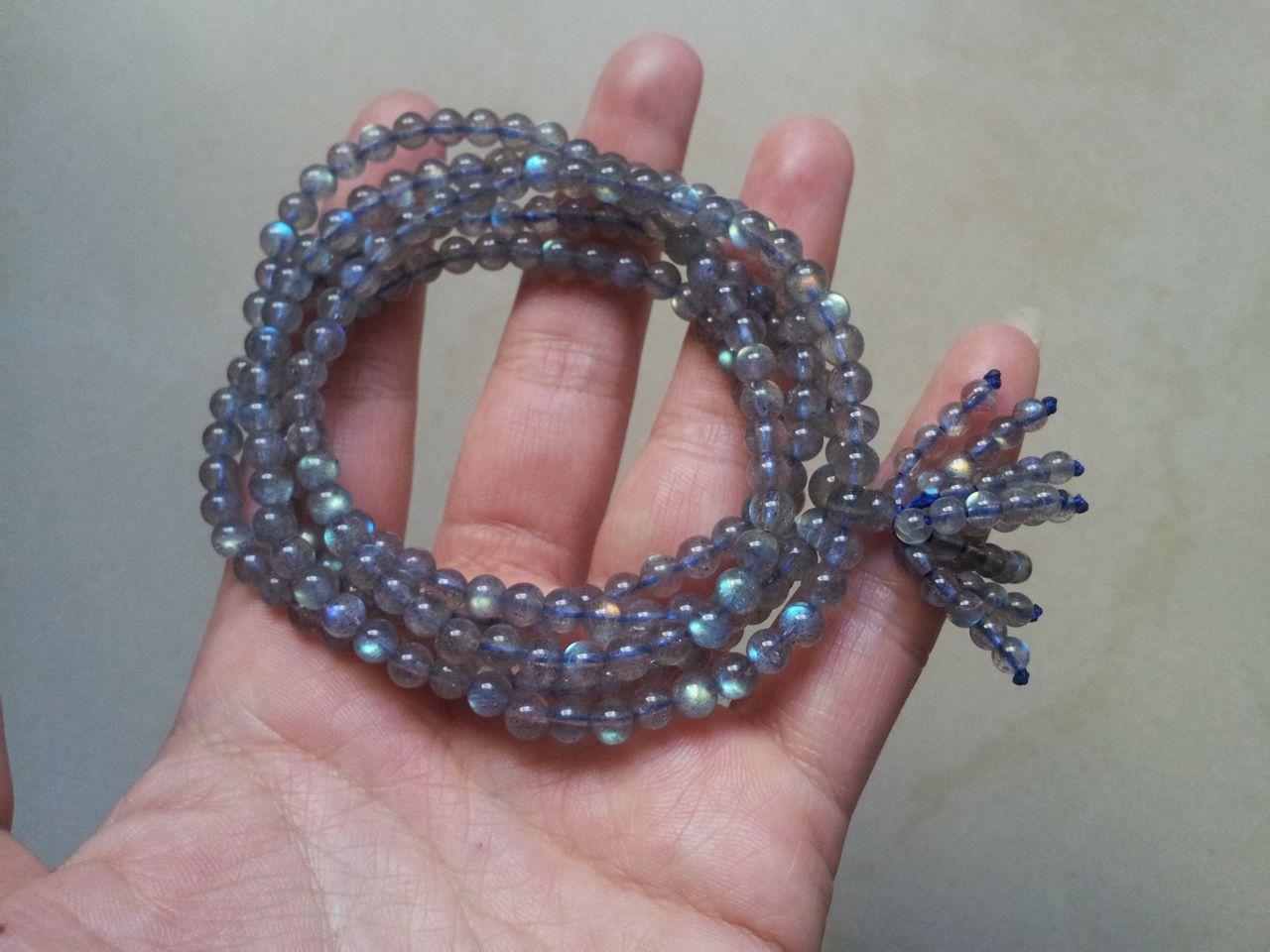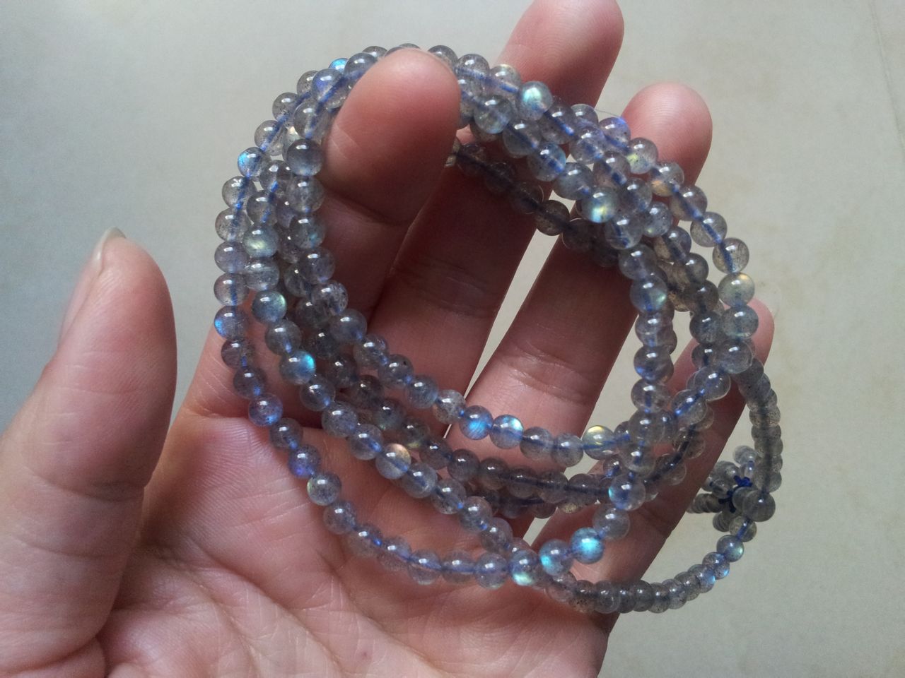 极品玻璃体216颗拉长石佛珠手链.颗颗强光。小灯泡。超强光。彩光为主。拉长难拍,爪机无力。原谅我吧,实物更好看。5MM的极品哦。包顺丰了