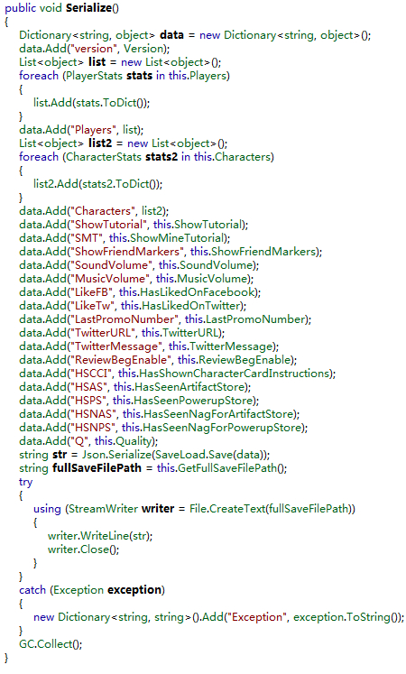 这段代码负责构建存档的整体框架,其中“checkState”函数是用来计算一个字符串的md5哈希值。而“saveClass”是一个字符串。知道了这些,这样我们就可以轻而易举地模仿游戏本身计算存档的检验值了。