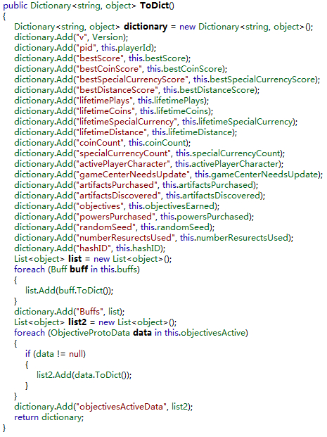 Temple Run是用Unity引擎做出来的一款游戏,开发语言是.Net C#。这就意味着,我们可以用一些工具来看到游戏的大部分源代码。接下来我就用代码+说明的方式,解释存档中每一个字段的功能。