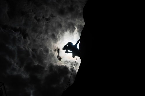 2012年7月29日,一位选手在全国攀岩邀请赛上角逐。当日,2012年“喜马拉雅”全国攀岩邀请赛在西藏拉萨举行,31名攀岩高手参赛,角逐高原攀岩大赛桂冠。 新华社记者普布扎西摄