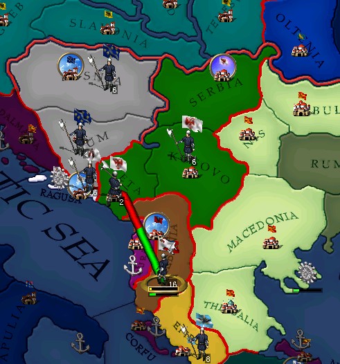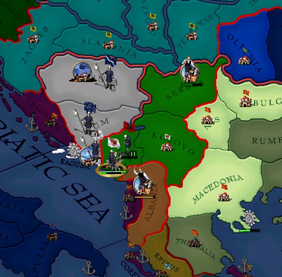 和阿尔巴尼亚拼围城,在我方骑兵的不断骚扰下,我方终于在阿尔巴尼亚军队之前占领了地方领土