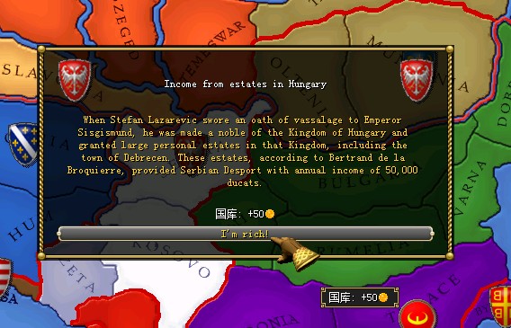 南欧霸主——匈牙利也见到了奥斯曼的雄起,发现了这个潜在的威胁,于是,向巴尔干唯一不诚服于奥斯曼帝国的塞尔维亚王国提出了同盟请求,有中欧霸主匈牙利的支持,月月君欣然同意