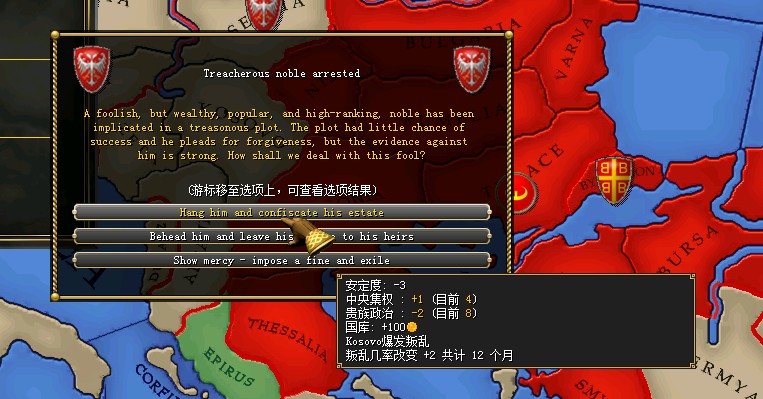 而奥斯曼帝国也开始了对欧洲的入侵,拜占庭帝国成了它的首个目标,对此,我方决定与拜占庭帝国联合起来对抗奥斯曼帝国!