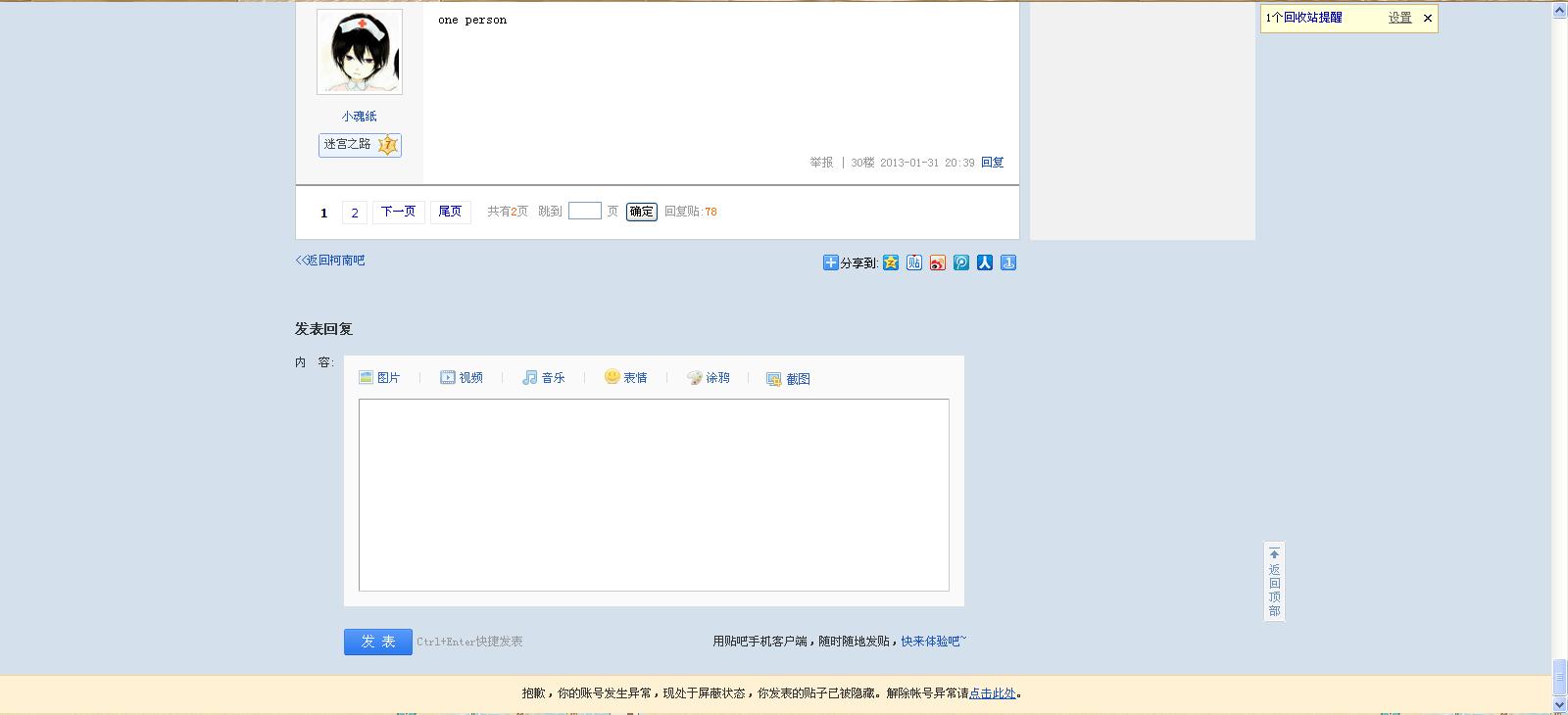 抱歉,你的账号发生异常,现处于屏蔽状态,你发表的贴子已被隐藏。解除帐号异常请点击此处