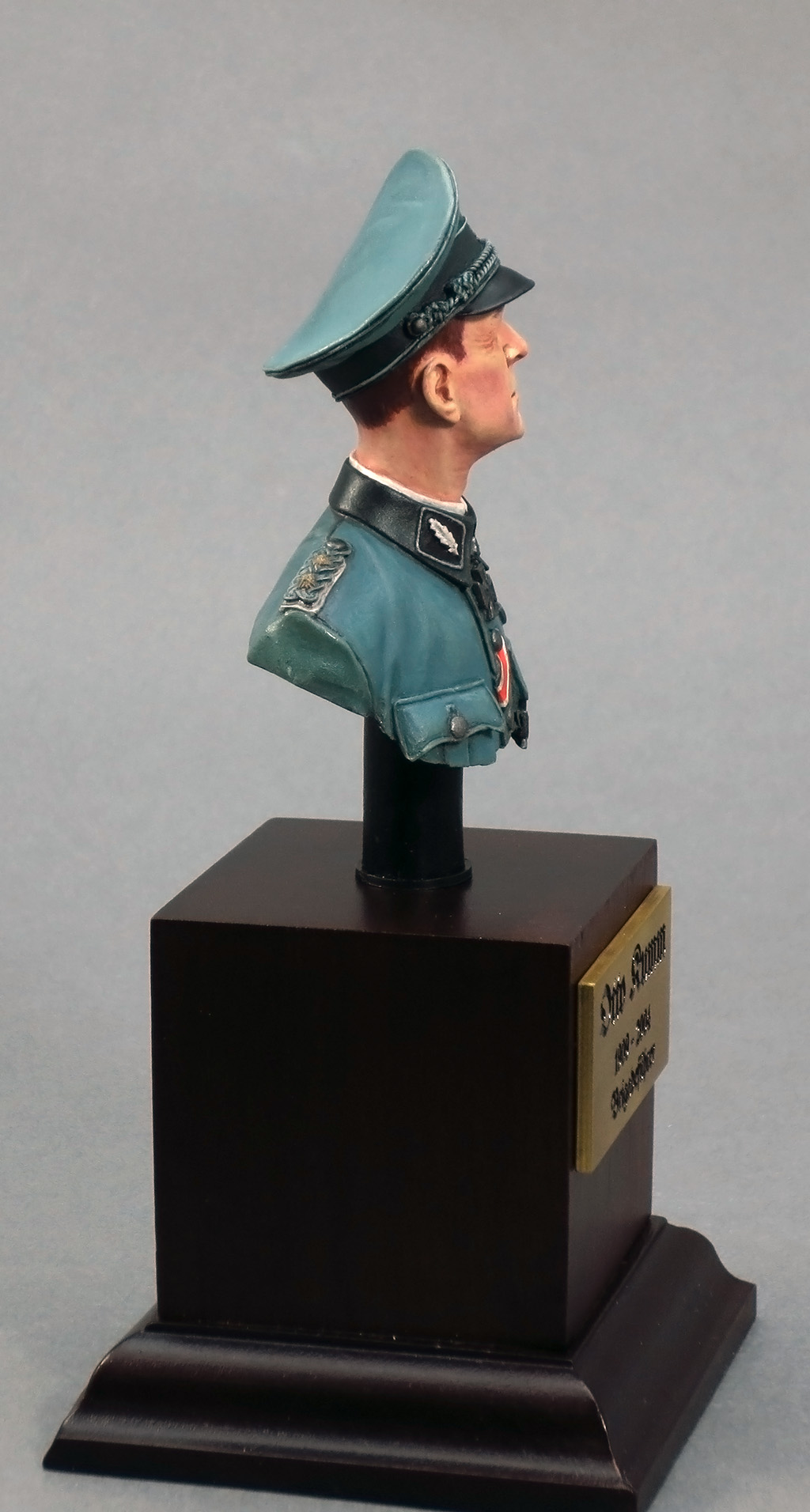 党卫军军官Otto Kumm的胸像。这款是若干年前的作品了,最近入了摄影器材所以拿来重拍了,顺便练习一下摄影。用的涂料是普通的硝基漆,手涂完成。铭牌是另外定做的。