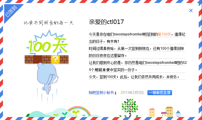 在本吧已累计签到100天了,截图留念一下下