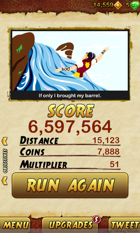 但是必须跳准 我成功过 只有一次 但是也说明它存在 你必须连续跳 不然就被河冲走了… 说到跳 就是第二个小技巧 到了后面 路况很复杂 有时会遇到类似于丛林那个坑那种的 就是连续两个台子…你要找准起跳点 然后连续跳 很多时候你看着绝境了 你感觉你跳起来的一瞬间 你感觉你落下去一定就死了 你就放弃了 手就拿开了 然后你就发现 其实没死 但是由于你放弃了控制 然后就嗝屁了…无论什么时候 你没看到出来等待复活的界面 都不要放弃 全神贯注去控制 你觉得你跳不过去 但是你就是过去了 你看着你踩到木头轮子上了 但是你就是还没死…有一次太快了 我刚跳过一个火 发现前面就是悬崖 冲着悬崖就下去了 但是我还是毅然决然的向右划了屏幕 硬生生的拉了回来 有的时候你没法解释 但你就是做到了 所以不要放弃!
