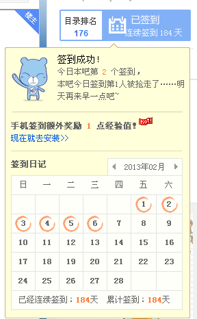 最高一次是8,表示用手机签到老卡了