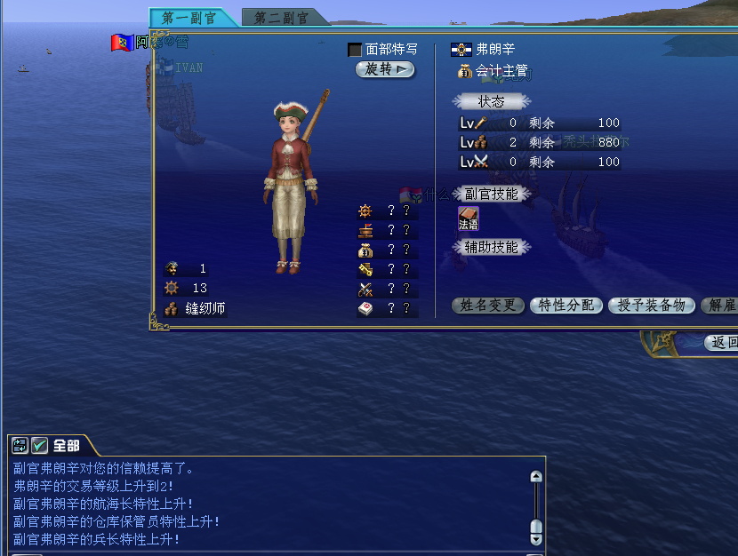 也没什么奇特的,涨信赖是在银行发利息时算,不是绝对的雇出来30天才涨。踢掉属性太差的副官无可厚非,但是由于信赖度的关系,会影响副官开船的时间。法兰欣是个属性要求比较低的副官,做为第一副官不用太挑剔。