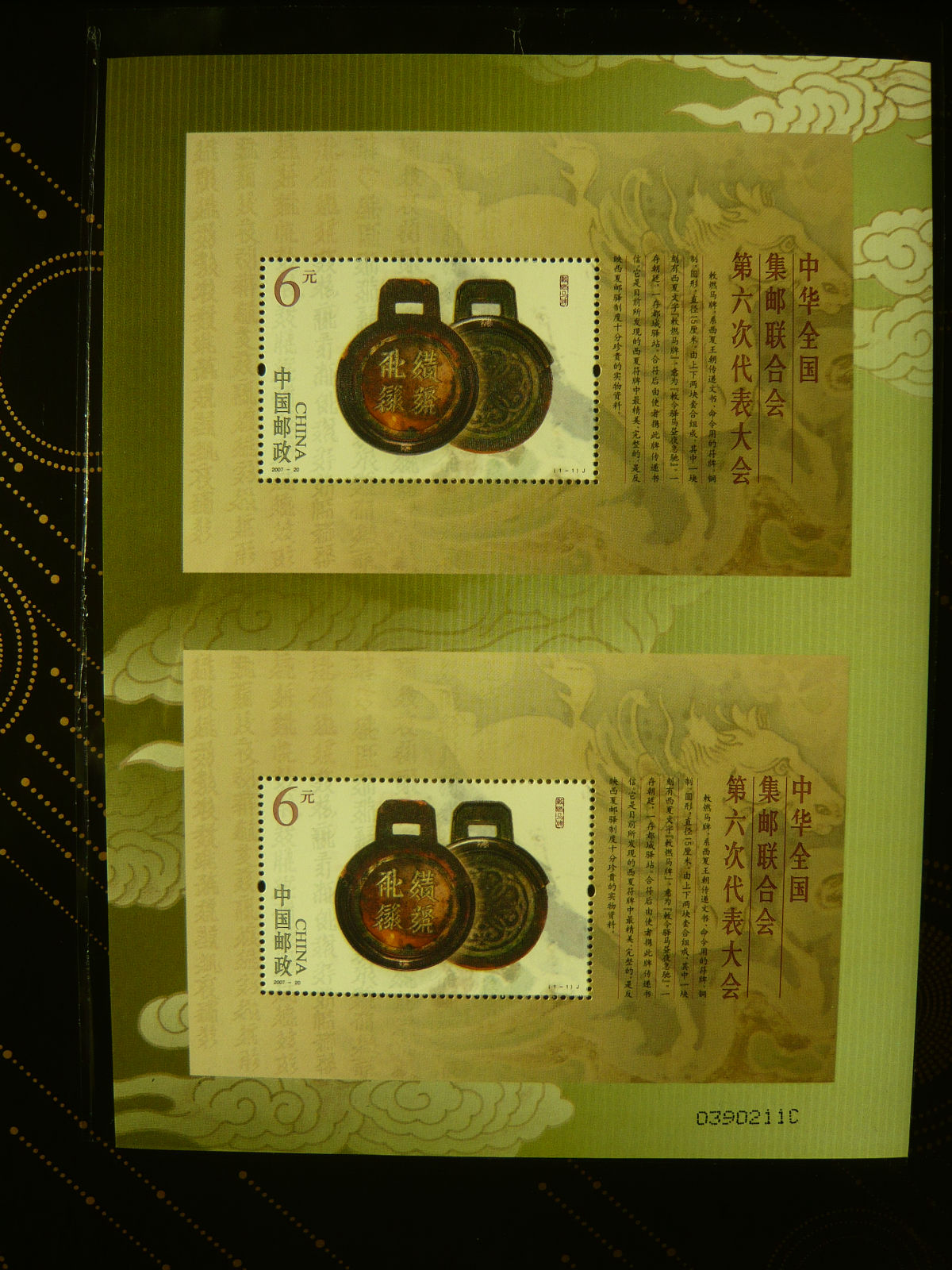 回复 lxj2p :上面记载“中国邮票个性化服务业务开办纪念”,应算见证了中国的个性化邮票业务的诞生吧?普通的“喝彩”比较便宜些,这个贵些。不知怎么地,用了双联的形式。