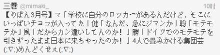 【ribbon3月号】马「在学校里有自己的储物柜,那里放有了很多巧克力」健「什么嘛,突然自满了嘛」聪「很有人气嘛」风「所以说弄错了嘛!」胜「在德国的人气被带来日本了嘛!」