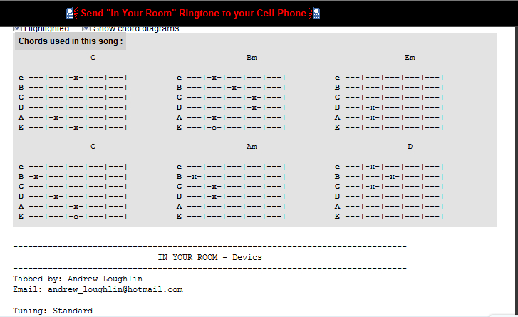 发《IN YOUR ROOM》的吉他谱,就几个和弦,扫弦的节奏自己编。