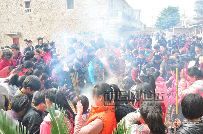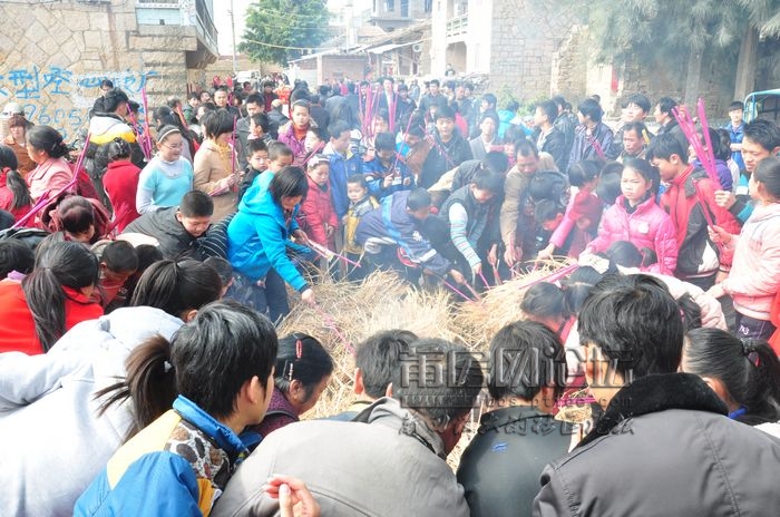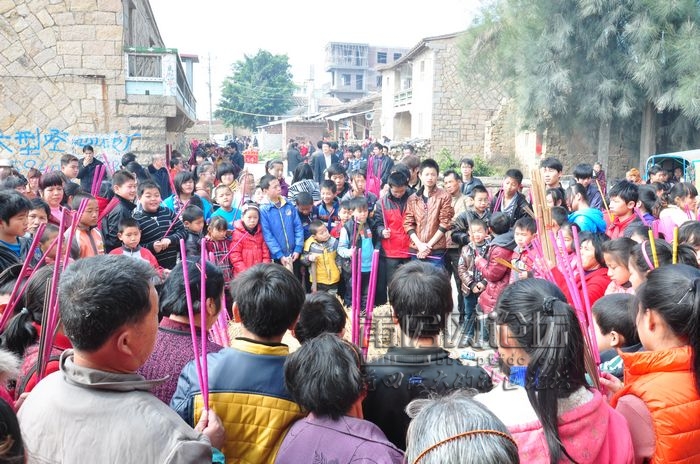 正月闹元宵,这是一年中最热闹的节日,但元宵总要有领头人,称“福首”,要闹元宵,首先就要做好准备,所以正月初四这一天,按成年排行决定福首外,还开展走火把活动,每户准备一支松木做到火把(现在被香所取代了),到宫社广场,燃烧火堆,点燃火把,待到三门统一响,人们就拿着火把各自飞快跑到家里,立即放进灶里燃烧,表示新的一年红火旺盛。这时,笑语声响,爆竹声此起彼落,好一派热闹的景象,接着,福首和乡亲们就积极准备正月十五闹元宵了。