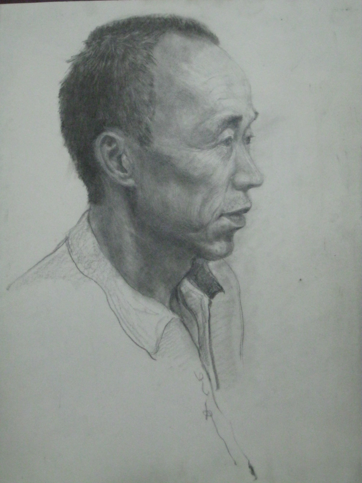 三副真人头像分别用了铅笔、棉柳+碳笔、棕色碳精条