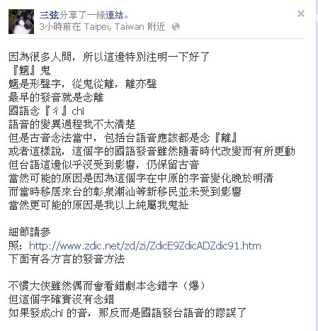台湾念li?那霹雳魑岳怎么念chi 我刚刚去确认一遍 真的念chi
