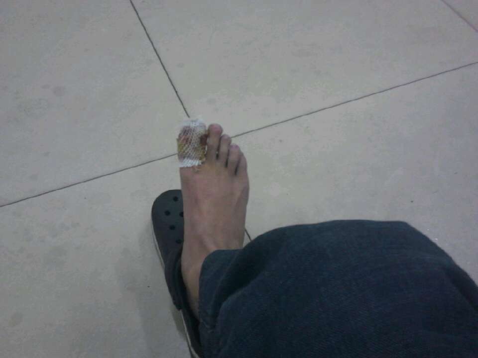 抠脚大叔现在就只有左脚抠了!