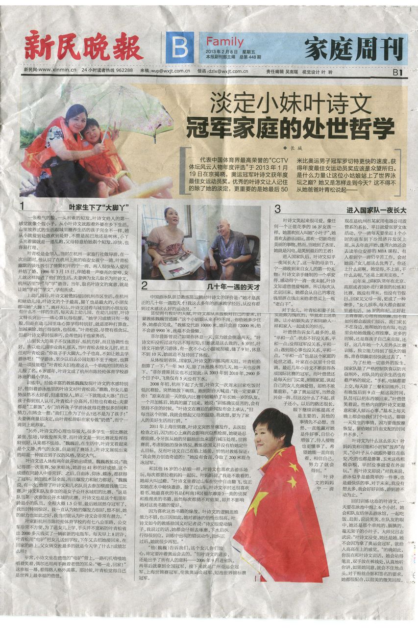 新民晚上上有关叶诗文的报导,报纸有点皱,见谅