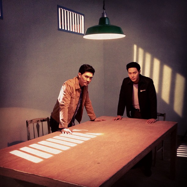蜜色今天的拍摄花絮图,看到竹马标注的文字谷歌英译是Honey color of death in prison,挺好奇这场戏究竟是讲什么的,腹黑和竹马竟然在监狱里,情敌对峙了~
