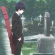 看到小木屋前坐着的人,米粒儿小声说道。
