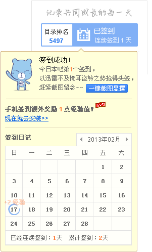 连续在本吧签到1天,晒下签到排名照,15976