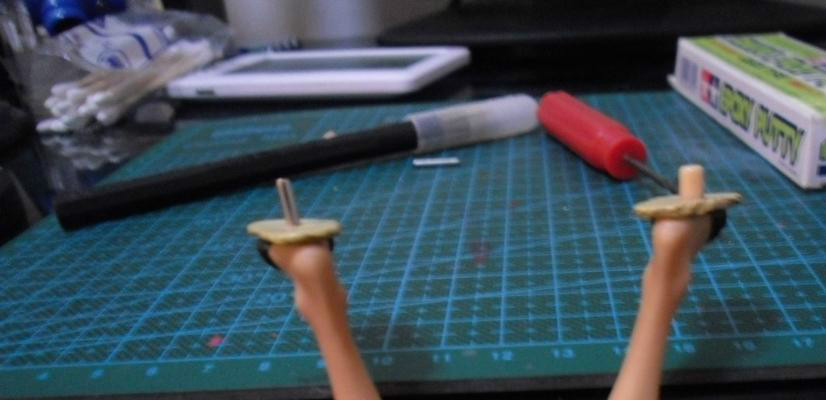 然后就当玩橡皮泥似的 塞一块当孔位里(塞满)然后插进金属枝 被挤出部分用笔刀沾点水就能轻松削走 之后就放让它慢慢干就是了 这次使用的是田宫快干型 6个小时就能干透 放一晚上睡一觉就干了 如果没干就是比例差太多或者根本算不上1比1比例。。。。