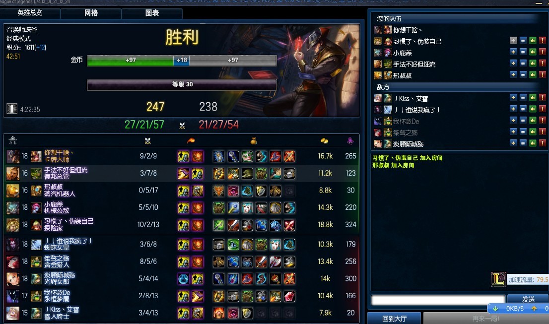 3连胜终于爬回1600了。。。各种难啊。。。俩月了,好几次都是差了不到10分。。上一把1599,心里又一凉- -还好上来了。。中间掉1300两次。。差一点1200了。。 不过都是乱搞的- -