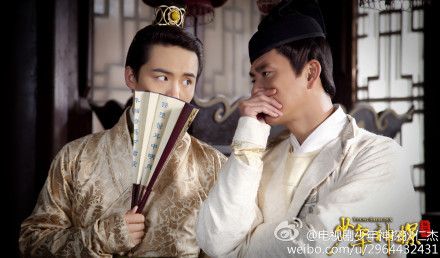 是狄公吃大蒜了,爷嫌有味道所以拿扇子挡住吧哈哈