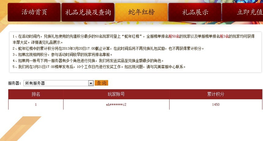 充值活动还没开始,那个红榜上就有个家伙1450的积分了,楼下图