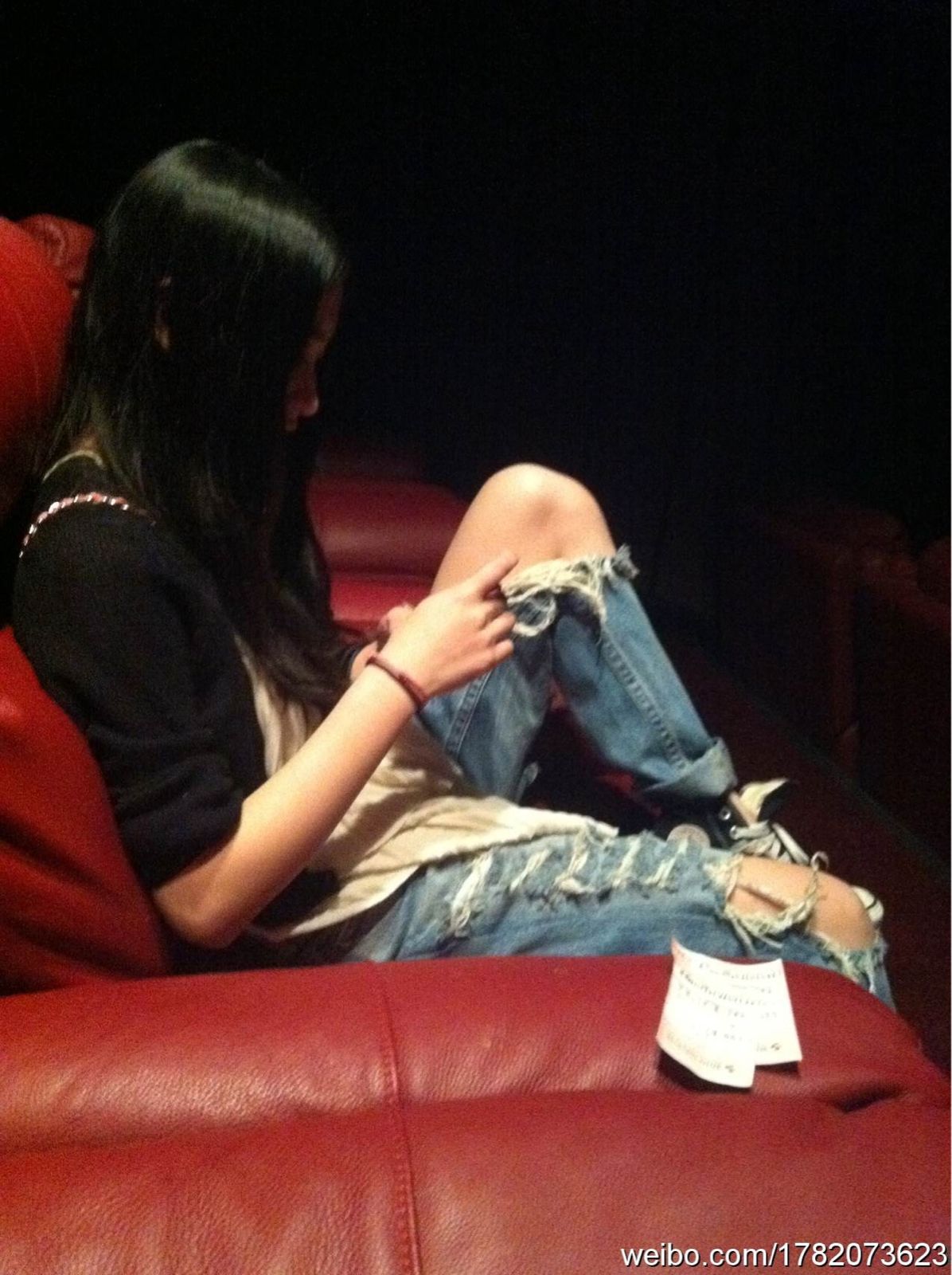我教你 图片上不是有网址吗 输了点进去就是这个人的微博网址 我看了这是她最早的一条微博底下有很多人问 她说这是她10年的时候淘宝搜那种vivi破洞牛仔裤找到的哇 现在肯定没了 她淘宝店里我看了也没有 你试着搜搜看吧 她自己买的然后又加工的 半蹲就一秒变短裤- -