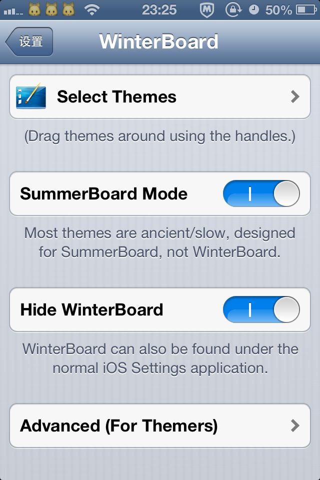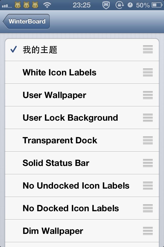 打开(手机)设置,找到winterbard-select Themes找到我的主题,勾了的取消再勾,未勾把它勾上就OK