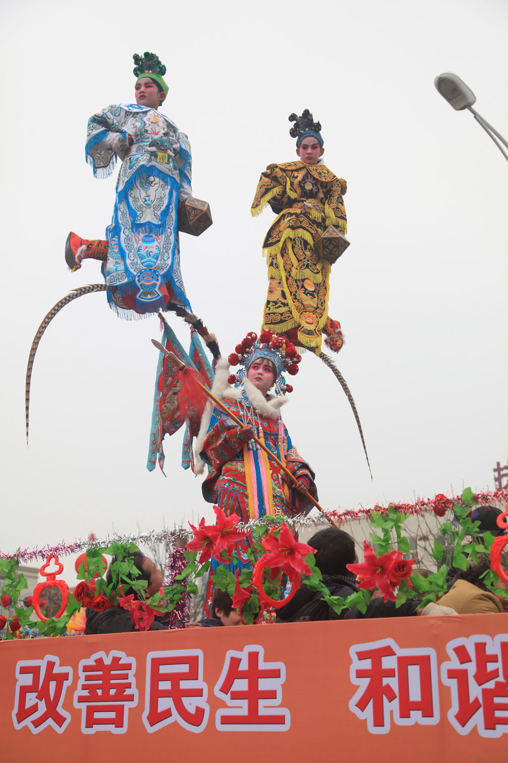 今天的天气很好,社火也很热闹.
