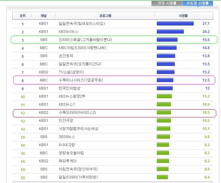 KBS:IRIS 2 10.5%[↓0.2%]同时段第三