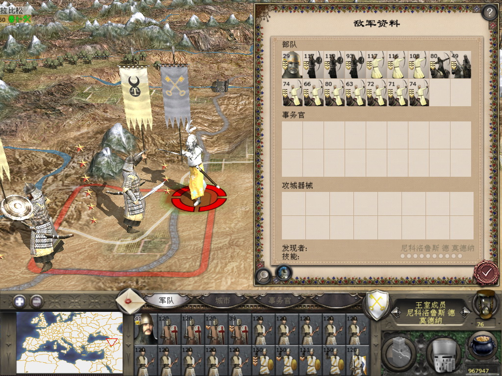 经斥候侦查发现,直接围困摩苏尔的3个蒙古满编都是精锐骑兵,一个步兵都没,接下来几个回合断然不会攻城,我要是不突围估计得被长期围困饿死。于是摩苏尔守军尝试突围,能消耗多少蒙古人算多少。