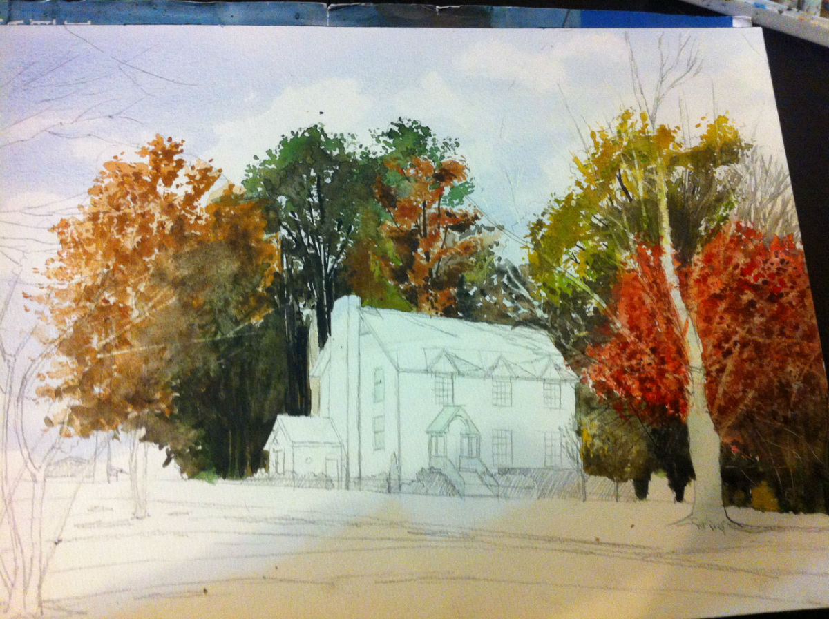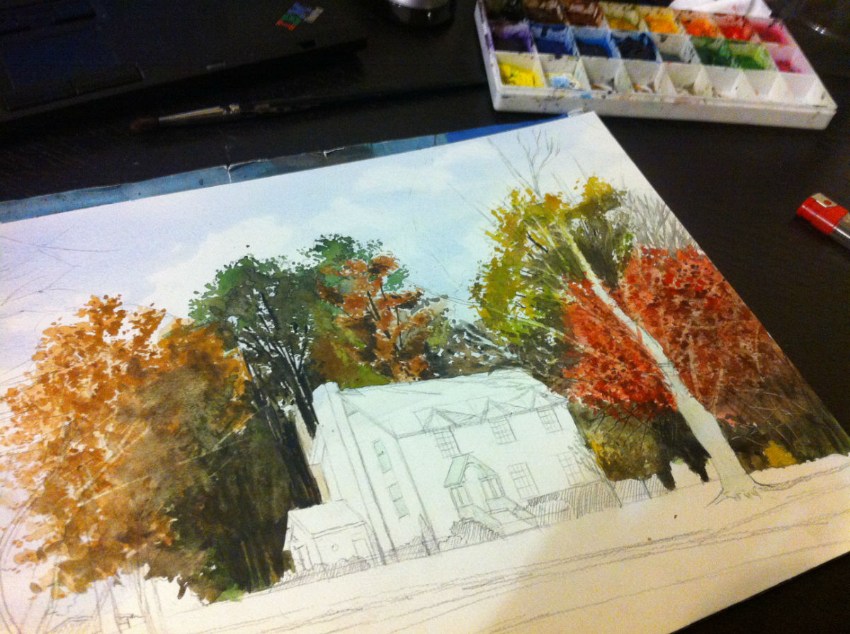 树叶有一种用纸巾粘着水粉往上抹的感觉,那种碎碎的感觉好棒!!!_(:з」∠)_