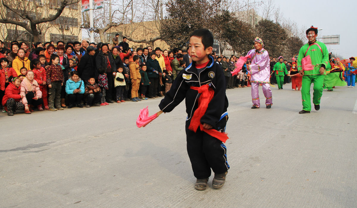 秧歌队伍的女娃们