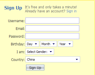(2)点击sign up进入,从上到下依次是:姓 地区 城市
