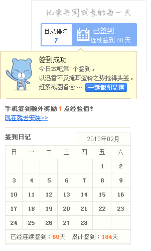 连续在本吧签到60天,晒下签到排名照,看看我神马水平