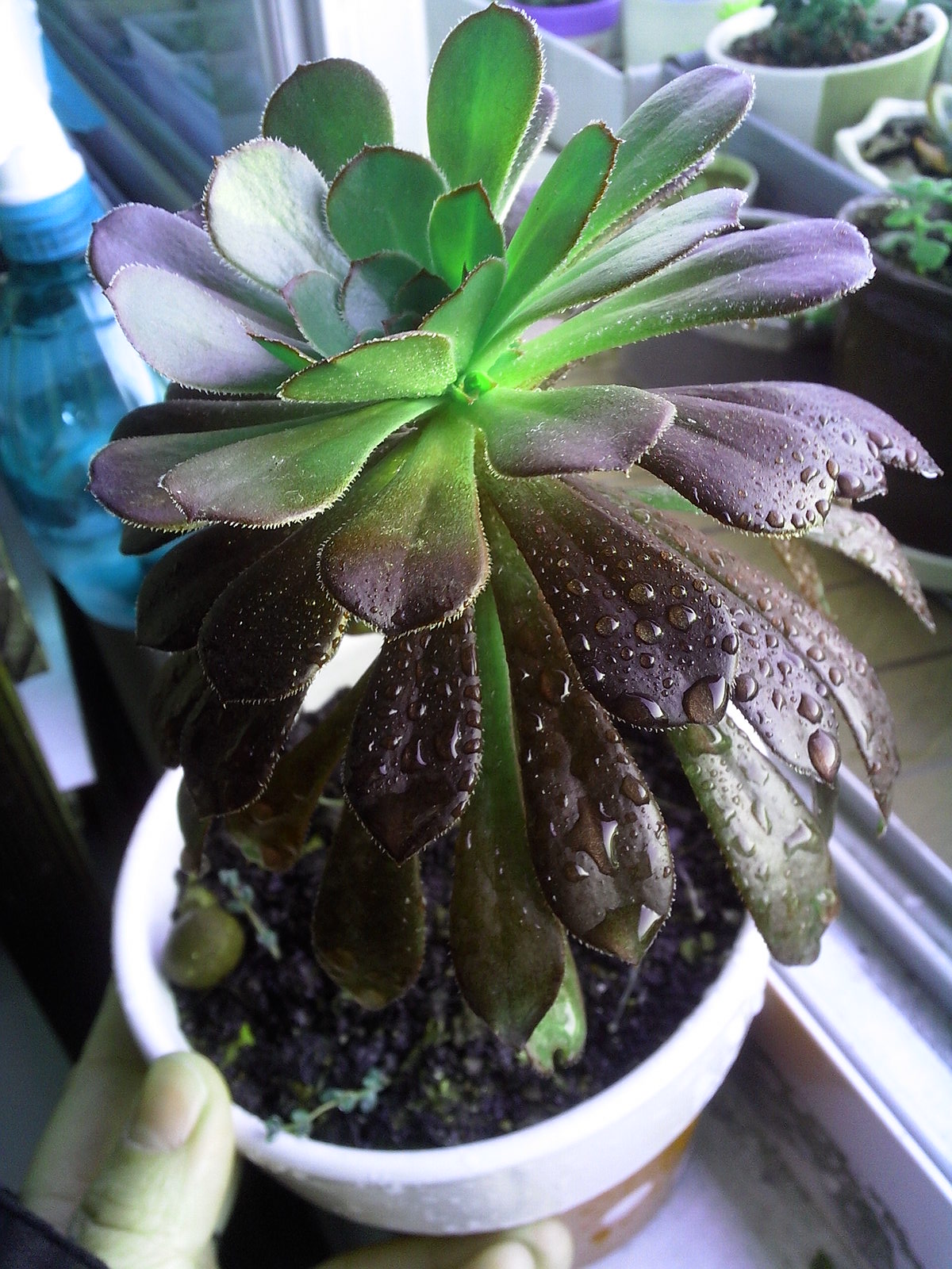 我是刚买来时也是巨丑的,后来我就把她扔外面棚子里,也怎么给水,慢慢的就变美了