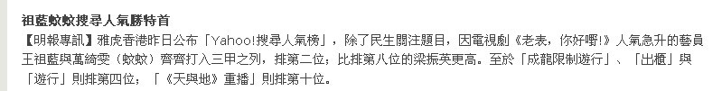 新剧配万绮雯 祖蓝笑称忘年恋