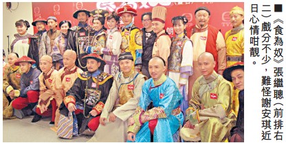 (星岛日报报道)王祖蓝、万绮雯、张继聪与黄智贤等,昨日为无新剧《食为奴》试造型。该剧四分一演员是《老表,你好!》班底,祖蓝笑言会努力破除小圈子,主动与其他艺员打交道,令大家更融洽有默契。