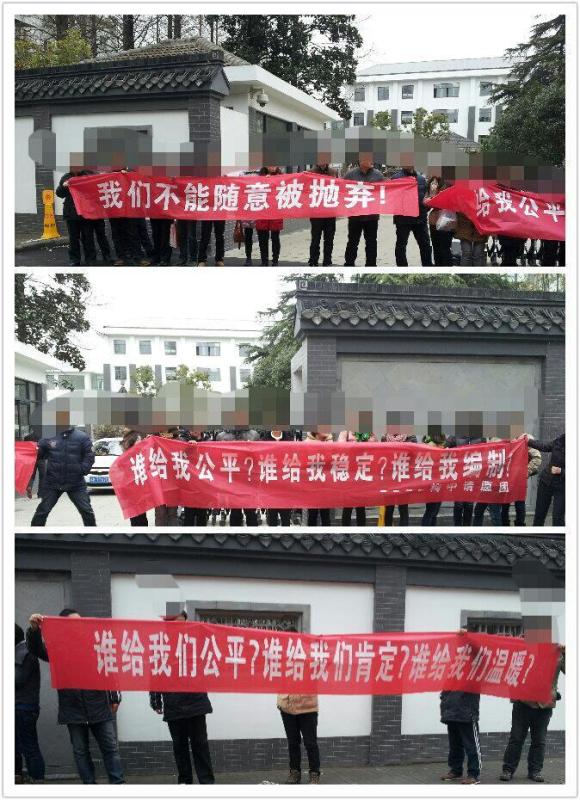 因为改为公办 所以市里要每年给我们派10来个老师来 他们一来 我们这就得走掉10来个 而且要被挤走的好像都是民办时期应聘上岗的老师 就是那些没编制的老师 所以大家都不愿意 于是就去教育局请愿了